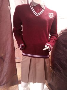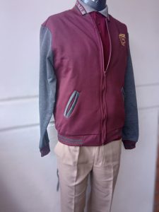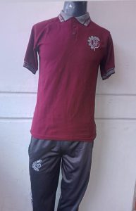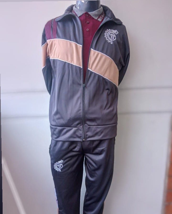 En caso que quieran comprar el conjunto deportivo es de color gris oxford con frajas colores blanco, guinda y caqui, y con playera escolar tipo polo color vino. Puede adquirirlo donde más le convenga.
